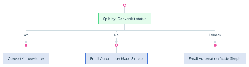 In this example, if someone has a ConvertKit status of Yes, then it means they have clicked on the link from an article about ConvertKit, so I know that they either use or are interested in ConvertKit. They will go down the “Yes” branch. I have added a specific CTA form for them.