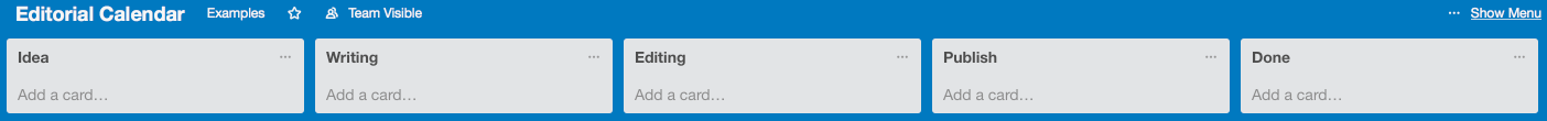 Trello is the tool I use to manage my editorial workflow, but it is just a tool. You can use any other tool if you prefer - a spreadsheet, a todolist application, physical index cards on the wall, pen and paper. The important thing is to setup a process that supports you in writing and publishing on a regular and consistent basis.